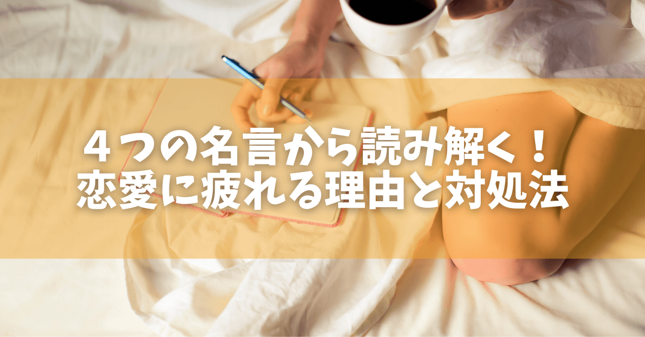 恋愛には幸せで楽しいものというイメージがあります。しかし恋愛をしている中で「疲れた」と感じる人も少なくないのではないでしょうか。今回は恋愛に疲れる6つの理由と、そんな時に使える3つの対処法をお話しします。また、恋愛疲れに効く名言も合わせてご紹介します。