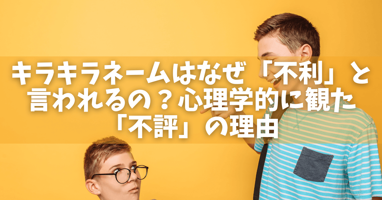 「個性的な名前なだけなのに、どうして?」と感じられる人もいるかもしれませんね。 しかしキラキラネームについては、その名前を選んだ「親」に対する周囲の心理学的な印象付けが非常に大きいのです。 ここでは名付けから受け取られる心理学的な印象についてご紹介をしていきます。